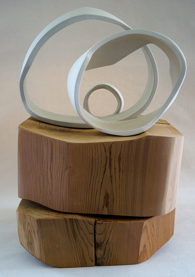 Resting Series Porcelain and Red Cedar, 16h x 12w x 12d